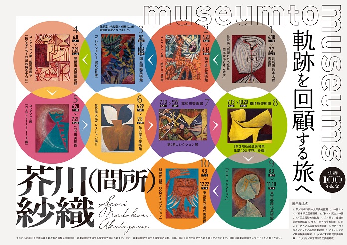 このプロジェクトは、全国10ヶ所の美術館との協力によって実現。副題である「軌跡を回顧する旅へ」とあるように、1つの美術館だけでなく、紗織の作品を所蔵する他の美術館も巡りながら、芥川(間所)紗織の作品に触れ、彼女の人物像に興味や関心を持ってもらう機会を提供することを目的としています。