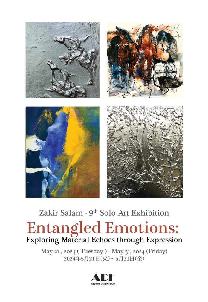 ADF (NPO Aoyama Design Forum) is pleased to present "Entangled Emotions: Exploring Material Echoes through Expression" by Zakir Salam, a Bangladeshi artist, as the 27th edition of the "ADF Art Gallery Project". This exhibition will be held from May 21 (Tuesday) to 31 (Friday), 2024. The exhibition will explore the deep bond between man and horse, with works that symbolize and embody the strength and speed of the horse. Admission is free, so please stop by if you are in the area.
