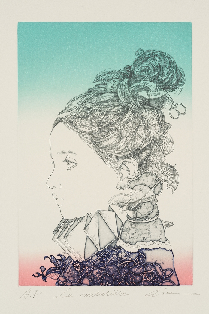 La couturière(裁縫師) 2021年 エングレーヴィング・エッチング、紙 30×20cm 作家蔵